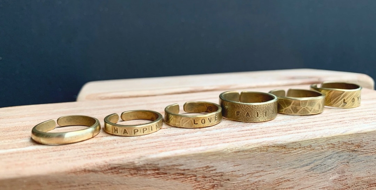 小班制至多8人,能依據各別進度仔細指導,課程時長約1至1.5小時。主要以純銀及黃銅兩種材質的戒指與手環為手作課程,去進行剪裁、銼修、打磨、敲字、敲紋、扭轉、焊接等,經由不同的技法淬鍊出專屬於你的作品。