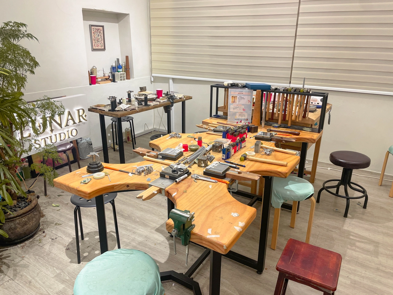 一路學習設計的【Lunar Studio】主理人,擅長將不同材料轉化成實際物件,更樂於和每一位到訪者一同激盪出全新的火花。不限任何形式,無論是常見的飾品、吊飾、餐具,甚至是菸斗專用的壓棒,只要有想法,在這裡都能用金工呈現出你期望的樣貌。這裡不同於制式的工坊,而是能承載想像力的空間,只要你有想法都歡迎和主理人一同腦力激盪。店家秉持定期優化與更新,讓人每次重返都能有新的感受與發現。在這裡,你可以帶著期盼,一起探索各種材料在指尖的變化與可能。誠摯地邀請你來 Lunar Studio將自己腦中的天馬行空,打造成只屬於自己的、有溫度的作品。