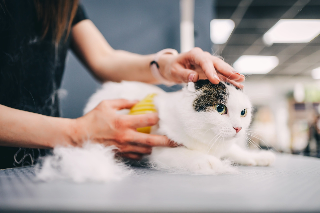 其次,狗狗和貓咪之間的美容也有差異性,貓咪比較容易出現焦慮、抗拒的狀況,在寵物美容前先噴一些費洛蒙噴劑,有助於穩定貓咪的心情,若貓咪於美容時出現焦慮的表現,要先暫停動作直到貓咪的心情恢復,美容結束後,也可以給貓咪一些獎勵。貓咪平時會自己舔毛整理毛髮,但依舊要定時進行清潔和梳毛,除去貓咪廢毛和促進血液循環,不過不須太頻繁。飲食方面餵貓咪吃魚類和蛋黃,能夠保持貓咪的毛髮光鮮亮麗。
